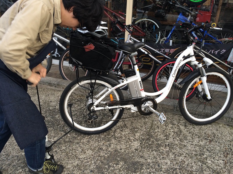 渋いツラをしたまま新奥多摩街道を戻る。多摩市まで残り10kmほどになった時、サイクルショップを見つけた。ここだ! すぐに駆け込む。店長らしきお兄さんに事情を説明し、少し充電させてもらう。抜けつつあったタイヤの空気も入れていただく。助かった。メガネにパーマが似合う、感じの良い店員さんだった。ありがとうございます。さあ、もうひと踏ん張り。